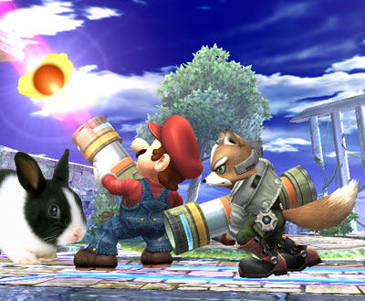Behold the Cracker Launcher screenshot, the one where Mario shoots from its barrel. What food do you see on the screenshot. Nothing? Really? Look at Mario's left, the food which is a little different colored than the others. It kind of looks like an egg. Yes, the egg marks the secret. It lies directly above a random bush. But there's something Sakurai didn't show you. In actuality the random bush wasn't a bush at all. The bush was a rabbit. Of course Nintendo didn't allow Sakurai the bush to be modeled as a rabbit so he modeled it as a bush but left clues. Look closely.